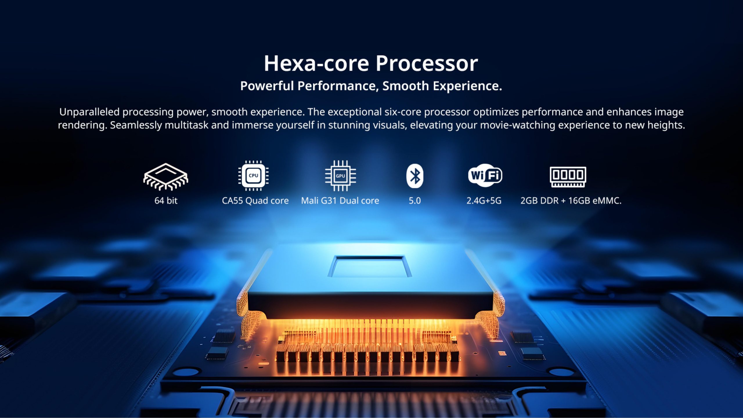 Sức mạnh xử lý không giới hạn mang đến trải nghiệm mượt mà tuyệt đối. Bộ vi xử lý sáu nhân ưu việt được tối ưu hóa để nâng cao hiệu suất và khả năng xử lý hình ảnh. Giờ đây, bạn có thể đa nhiệm liền mạch và đắm chìm trong những khung hình tuyệt đẹp.